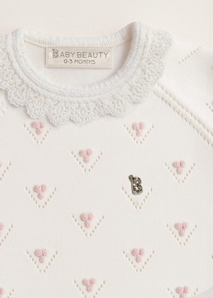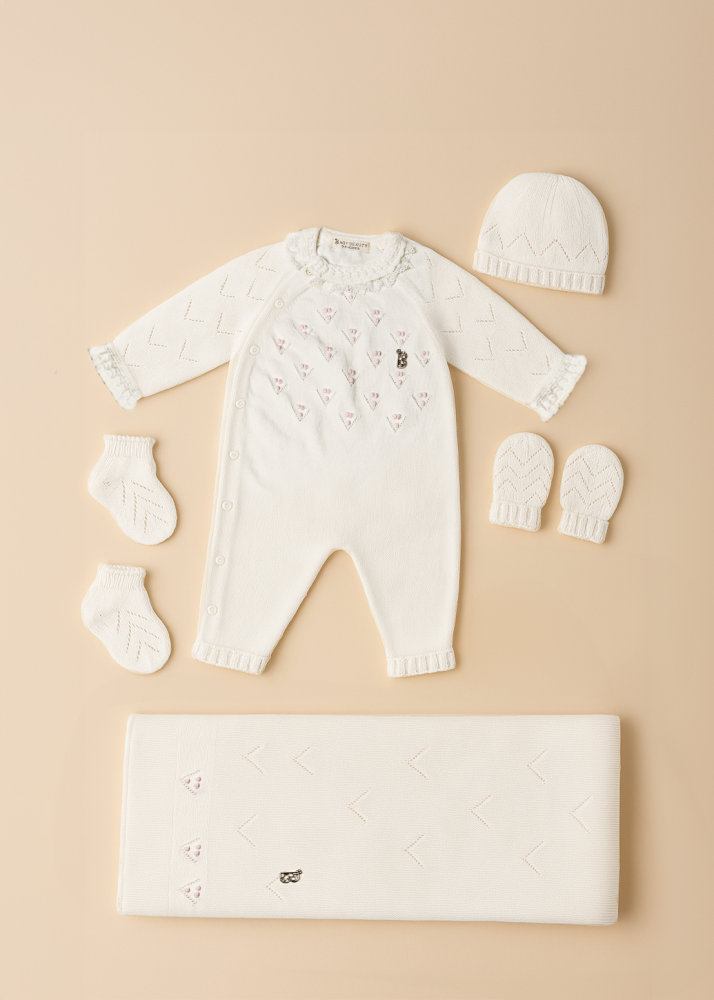 طقم مواليد بناتي - اوف وايت مزين بلمسات وردية ناعمة