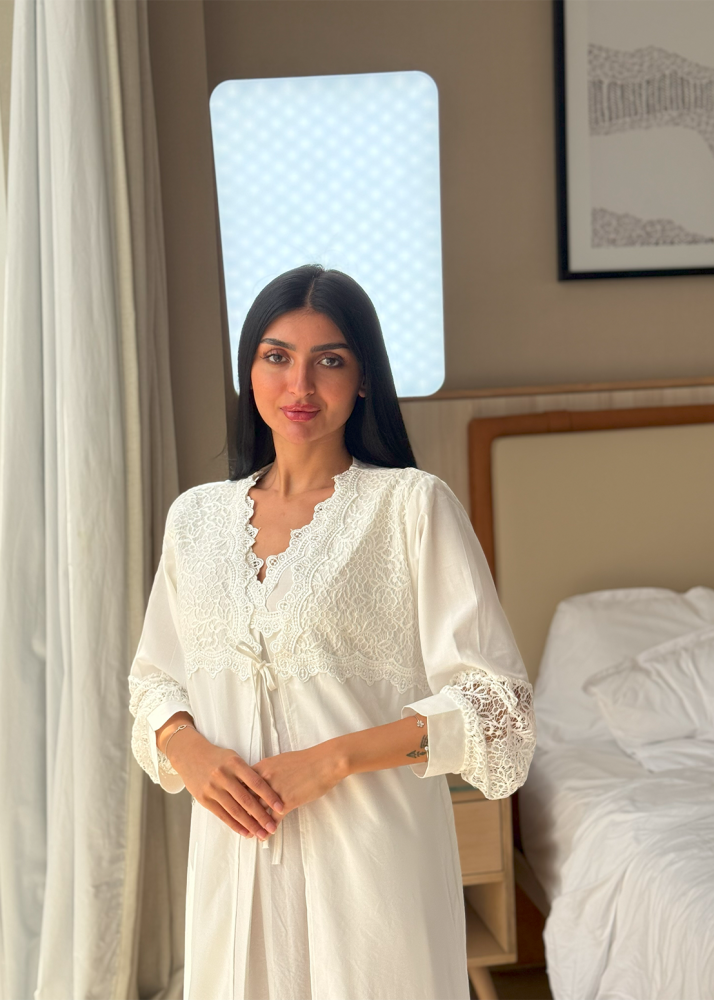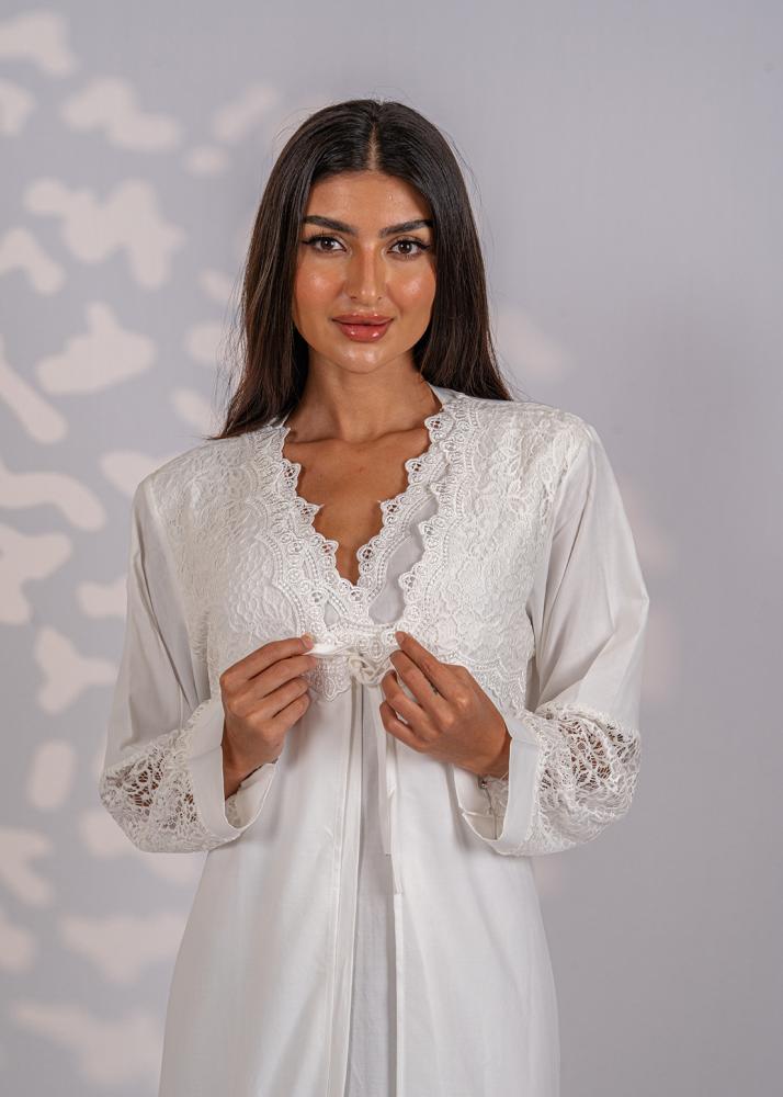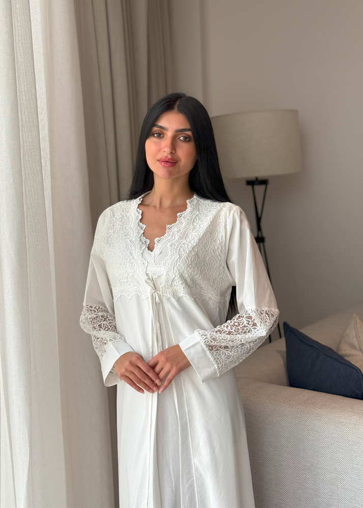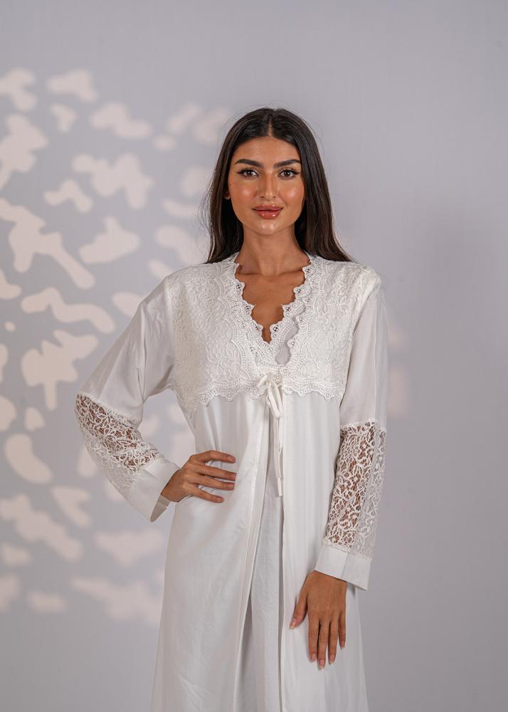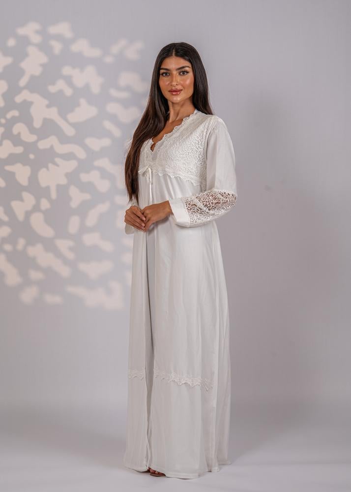روب استقبال ناعم ومميز بالدانتيل مكون من روب خارجي + بطانه داخليه + طرحه .
